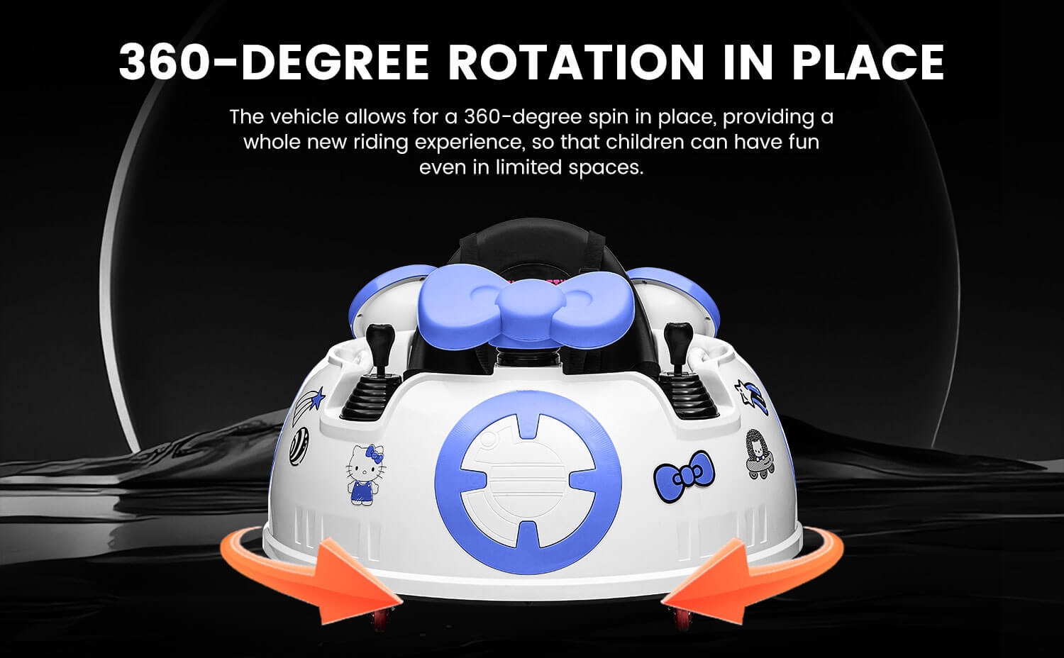 Hello Kitty Space Explorer Bumper Car: This electric car for toddlers 1.5 to 5 is perfect for little explorers! With its adorable Hello Kitty design, it's one of the most exciting bumper cars for toddlers 1.5 to 5. Your child will love this car for kids.