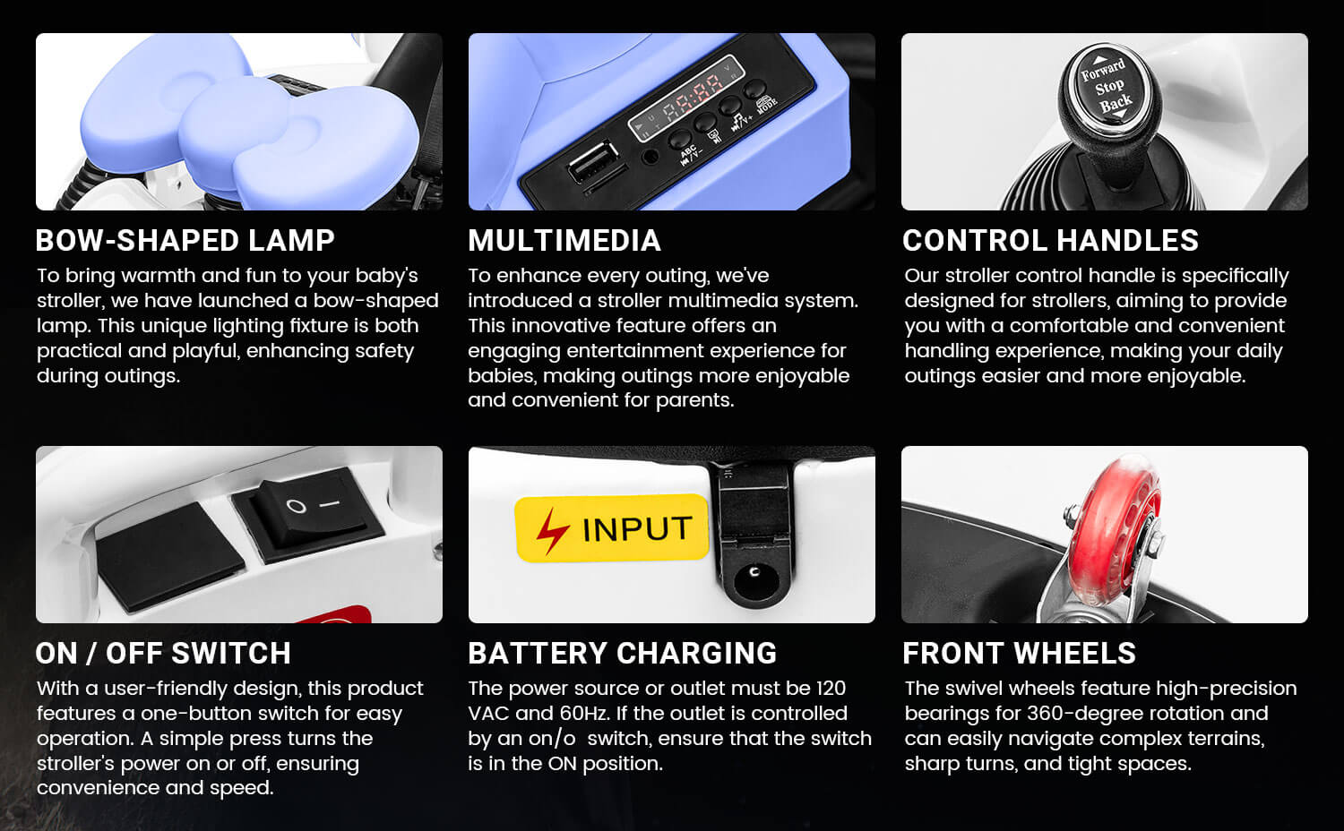 Music using USB/Micro SD Slots or AUX/MP3 Input: This car comes with an MP3/Music outlet so that your child can play his/her favourite audiobooks, or music while he/she’s cruising around.