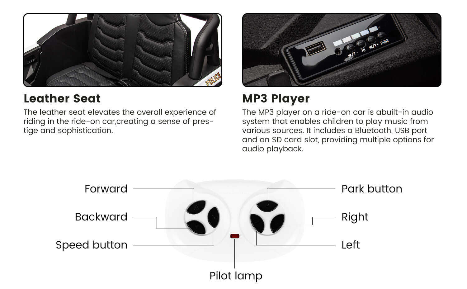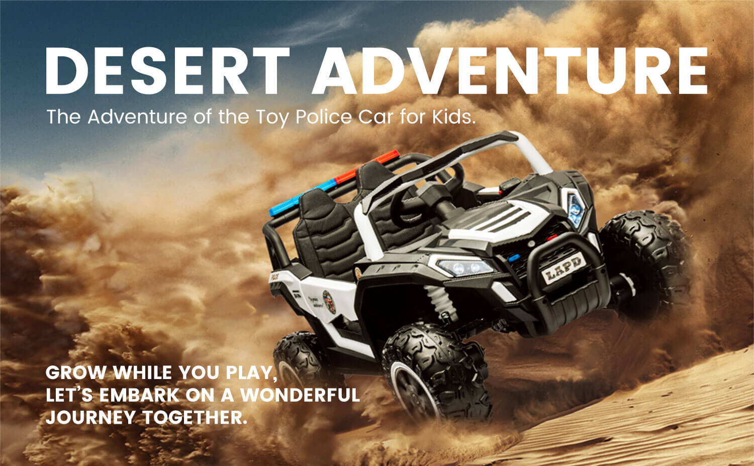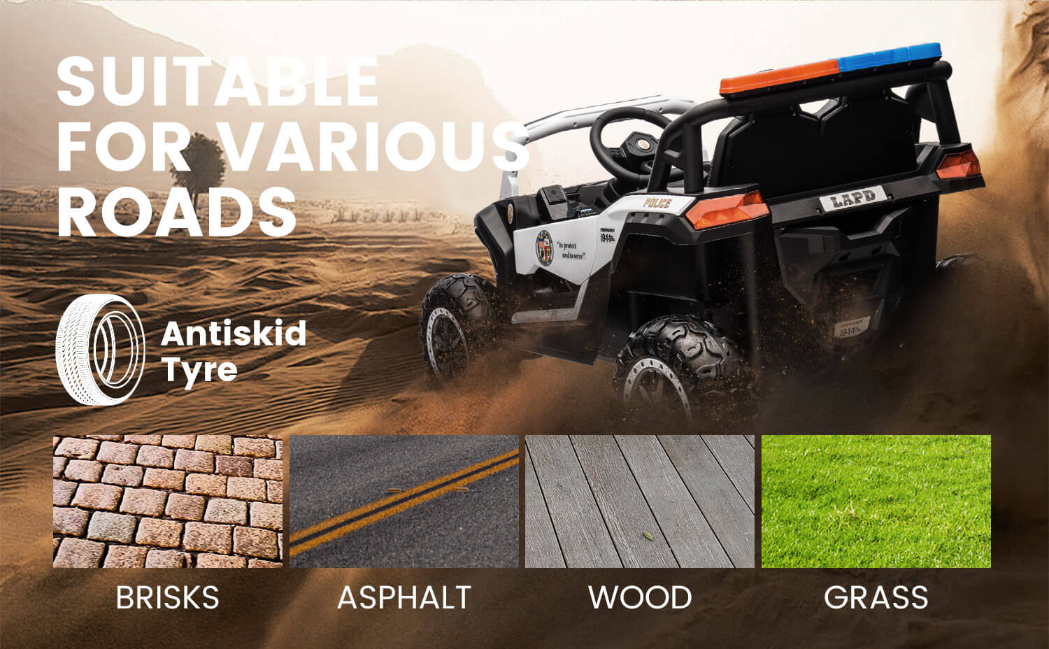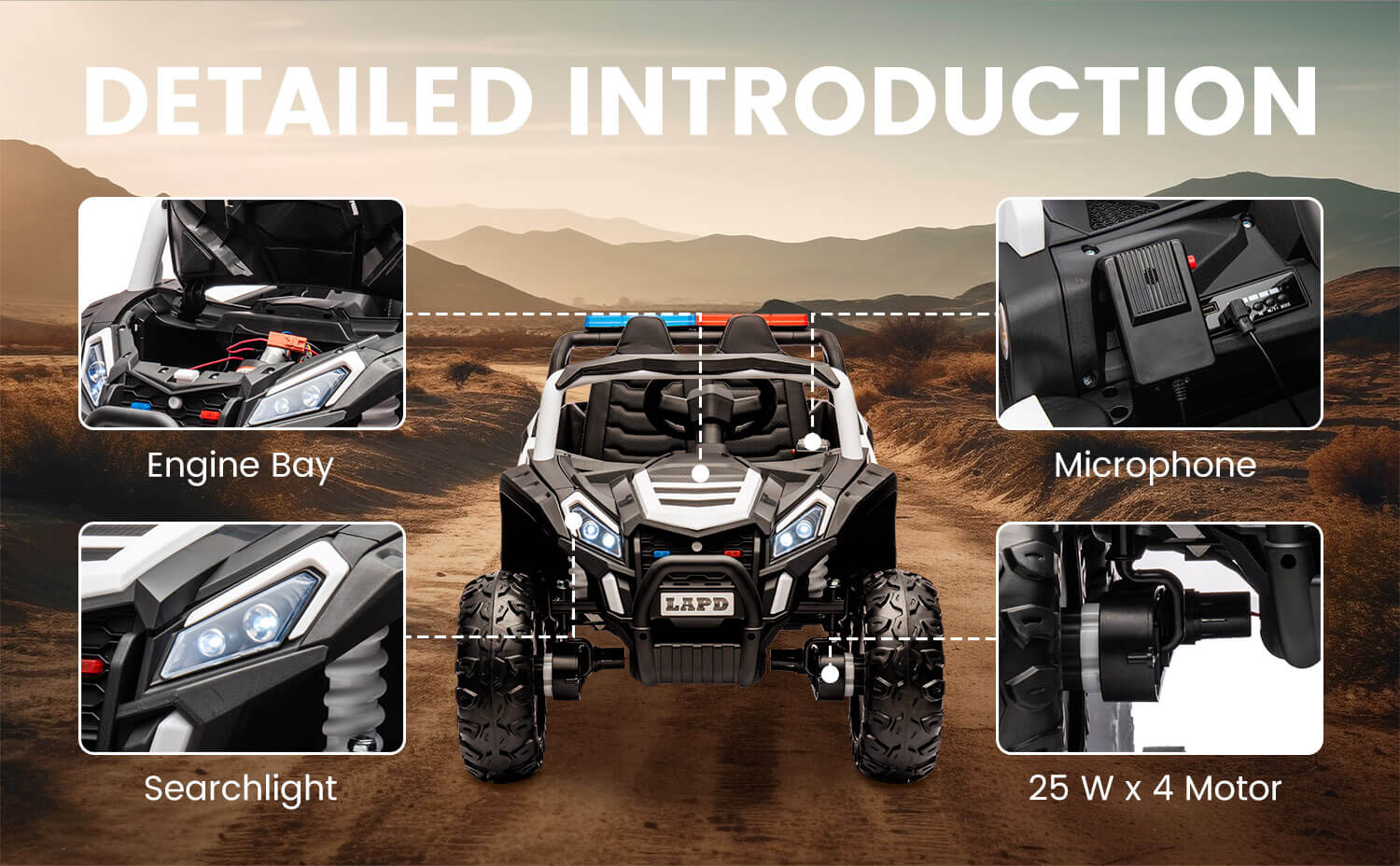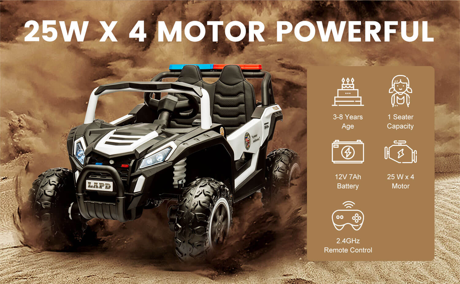 Realistic LAPD Police Buggy UTV Design: This police UTV features a realistic LAPD design, perfect for kids who love pretend play and role-playing as police officers.